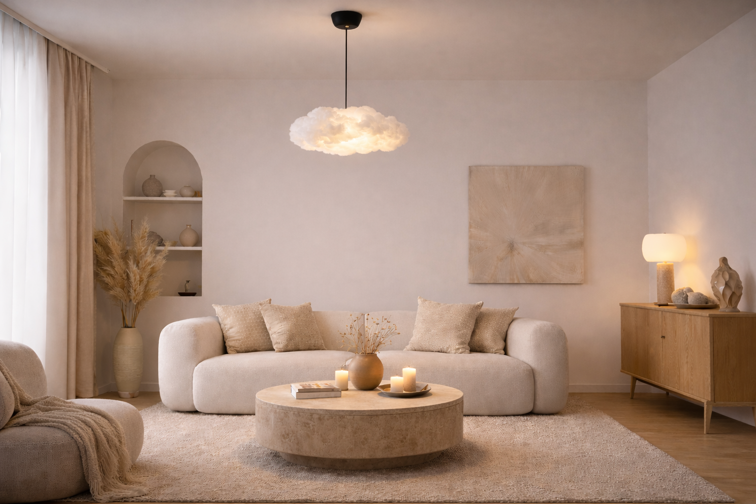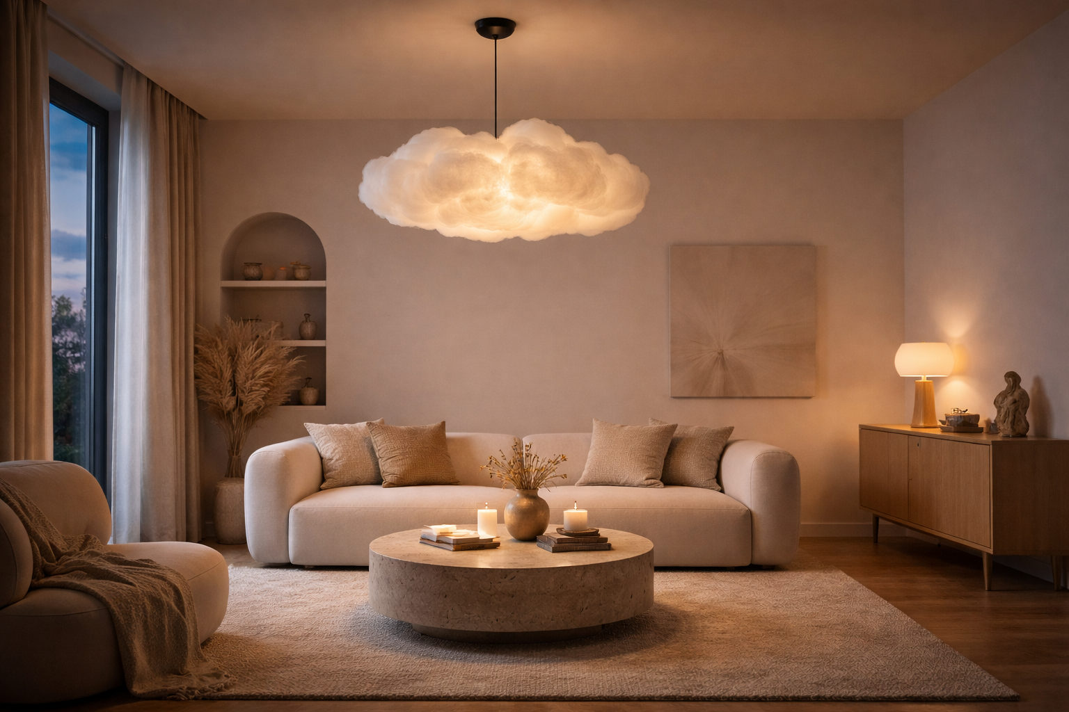 Shade is a handmade ceiling lamp that brings softness and calm into a space. Inspired by the gentle presence of clouds, it diffuses light evenly and transforms rooms into warm, serene environments, perfect for modern interiors that value emotion as much as design.